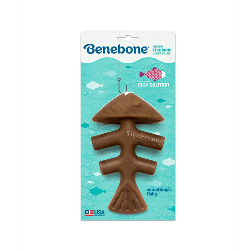 The Benebone Fishbone is the perfect toy for any dog that loves to chew. It is made of durable material with a unique shape that is easy to hold but also challenging so it keeps your pup entertained. It is flavored with real salmon for a scent that is irresistible to your pet but undetectable by you. Once they get a taste, they'll be hooked on this long-lasting chew!