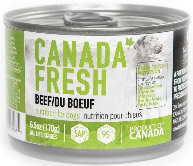 Canada Fresh Beef Canned Dog Food is made with natural ingredients from quality Canadian resources. It is formulated with beef and beef broth as the first ingredients. Using health-promoting omegas from salmon oil, joint-friendly glucosamine, along with taurine, vitamins, minerals and essential amino acids creat a complete nutrition for dogs of all ages.