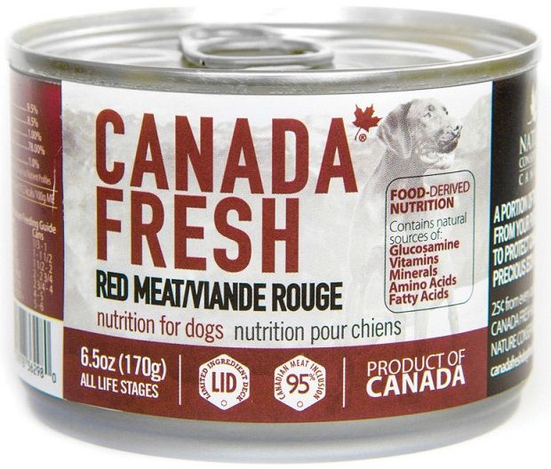 Canada Fresh Red Meat Canned Dog Food is made with natural ingredients from quality Canadian resources. It is formulated with beef, beef liver, beef broth and lamb as the first ingredients. Using health-promoting omegas from salmon oil, joint-friendly glucosamine, along with taurine, vitamins, minerals and essential amino acids creat a complete nutrition for dogs of all ages.