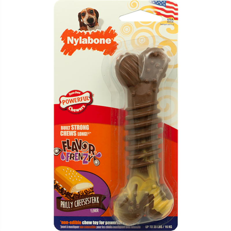 This textured chew toy in delicious cheesesteak flavor is a great way to occupy and entertain your dog while discouraging destructive chewing. Made in the USA! For dogs up to 35lbs.