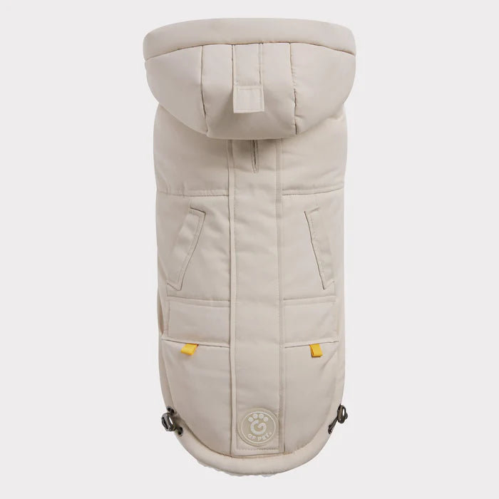 The GF PET® Elasto-Fit® Arctic Dog Parka is sumptuously puffy, snuggly warm and luxuriously gorgeous! With savory colors and a tackable hood, this parka bridges generations, appealing to all age groups of dogs and owners. Enjoy every bit of warmth and comfort you have come to expect from GF PET® in this Arctic sensation! Fun features include faux pockets, lined hood, GF PET® signature accent pocket tabs and contrast binding. Turn heads at playtime of while strutting down the street, and sink into its’ warm and comfy popcorn sherpa fleece lining. Water repellent and super adjustable, with patented Elasto-Fit® technology! Designed for brave dogs who are ready to face winter head on!