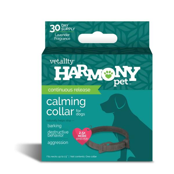 Harmony Pet Calming Collar for Dogs uses P.E.T. pheromone to calm dogs naturally. This pheromone technology mimics the maternal pheromone from a momma dog to soothe her pups. Dogs of all ages recognize this calming pheromone for life. The continuous release of the calming pheromone helps provide relief from anxiety and stress for up to 30 days. Helping dogs live in harmony where ever they go.