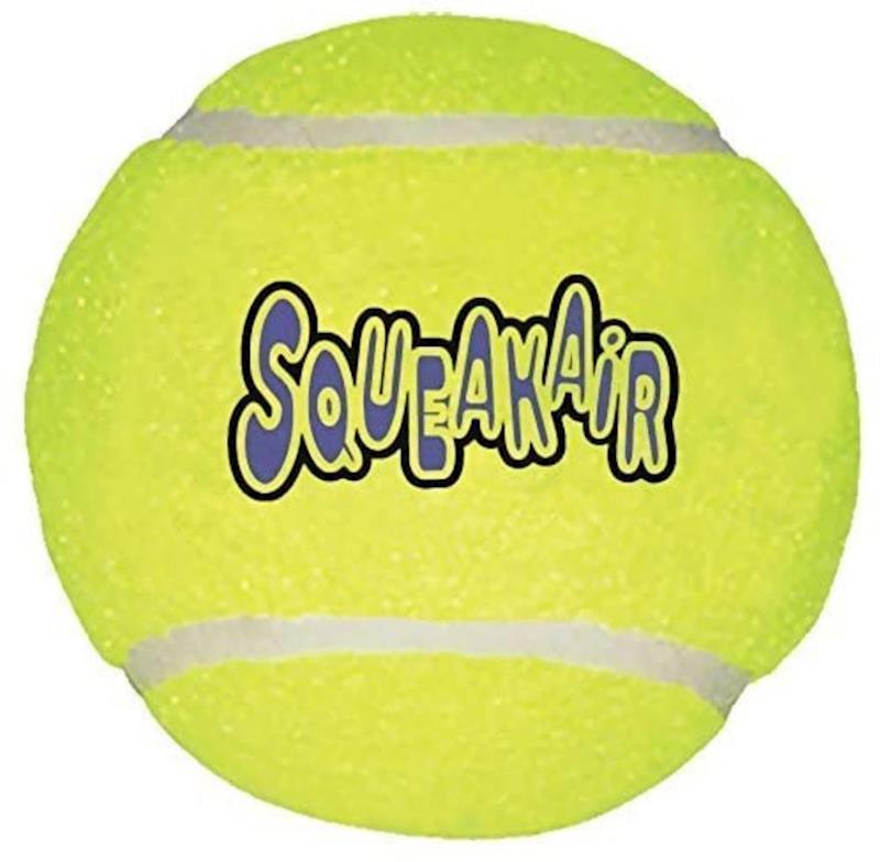 The KONG Squeakair Ball combines two classic dog toys - the tennis ball and the squeaker toy - to create the perfect fetch toy. Our durable, high-quality Squeakair tennis ball will not wear down your dog's teeth. It's made with a special non-abrasive felt, compared to the abrasive material on normal tennis balls.