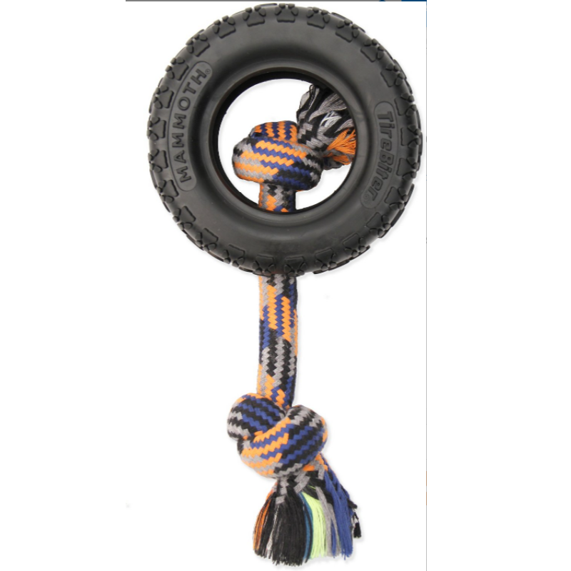 This heavy-duty toy is crafted with a new advanced natural rubber material and a double knotted rope to help it stand up to even longer-lasting play. Mammoth Tirebiter toys are sustainably manufactured in a North American factory and proudly designed and developed in the USA with USA materials. They are also designed with a progressive chew system, which means your pup will slowly start to gain strength as he works his way up in toy size! Roll, toss or tug the tire to encourage interactive play and keep your canine companion engaged and encourage healthy exercise.