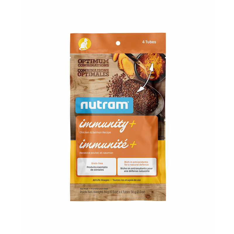 Nutram Immunity+ Cat treats support your pet's natural defence. Flaxseed, rich in omega-3 fatty acids, and turmeric, a source of curcumin, provide immune boosting properties to help support a strong immune system.