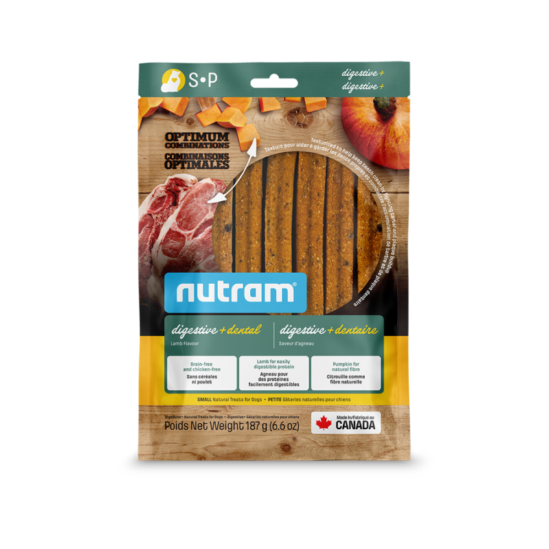 Nutram Cognitive+ Dental Treats promote the optimum environment for sensitive stomachs. Lamb, a gentle protein source and Pumpkin, with its natural fibres, provide an optimal environment for proper digestion.