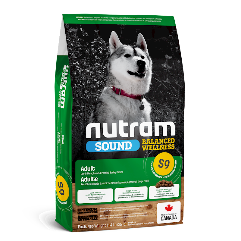 S9 Nutram Sound Balanced Wellness® Adult Lamb Dog Food is a Holistic, multi-beneficial, and nutrient-rich recipe that improves your pet’s wellness from the inside-out. Our Holistic approach starts with digestion through a special combination of Pumpkin and Chicory Root. Chicory Root promotes the growth of natural intestinal bacteria, while Pumpkin is rich in fiber, assisting with movement of food through the digestive system. This combined with a blend of Salmon Oil and Flaxseed, rich in Omega-3 fatty acids, allows Nutram’s Optimum Combinations™ to provide the nutrients that support healthy skin and a shiny coat. You can be confident that your pet’s food is healing, wholesome and nutritionally sound.