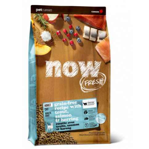 It's no surprise that cats love the freshness of now. With this Now Fresh Adult Fish Recipe, your kitty gets 100% fresh trout, salmon and herring, and 100% fresh omega 3 & 6 oils from coconuts and canola. It also features wholesome berries, fruits and veggies, such as blueberries, cranberries, broccoli and chicory root. Yum! It contains zero grains, gluten, wheat, beef, corn, soy, rendered meats, by products or artificial preservatives. This recipe is suitable for adults cats between 1 and 7 years.