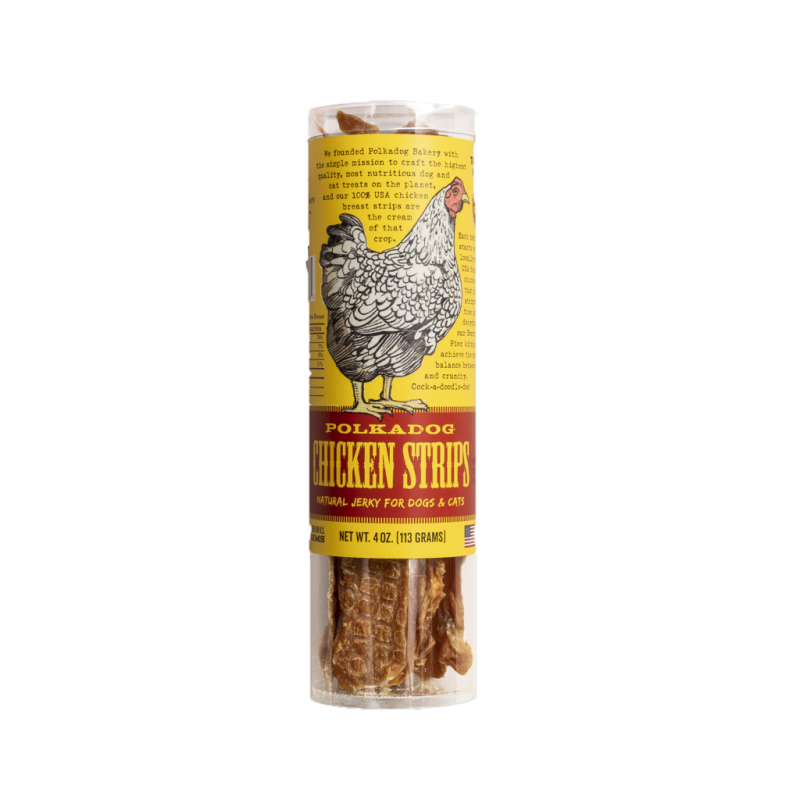 Each batch of chicken strips start with locally sourced USA farmraised chicken. We hand strip and gently dehydrate the chicken in our Boston kitchen to achieve the perfect balance between meaty and crunchy.