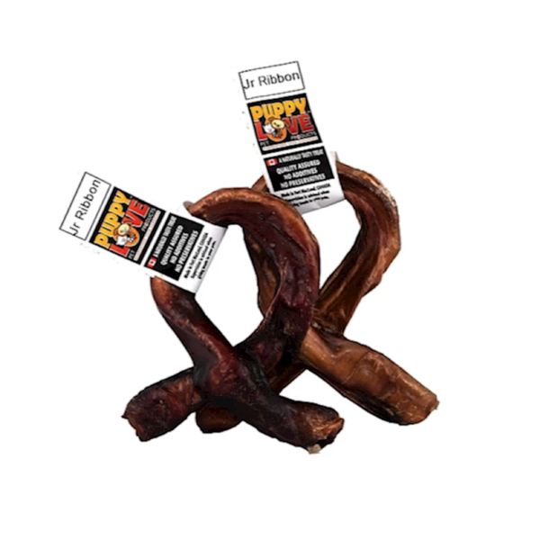 4 to 5 inches in length, this is a medium chew for small and medium sized dogs. Jr Ribbons are a source of protein and promote dental health.Moisture: 14.5% | Protein: 84.65% | Crude Fat: 1.39% | Crude Fiber: 1.93%