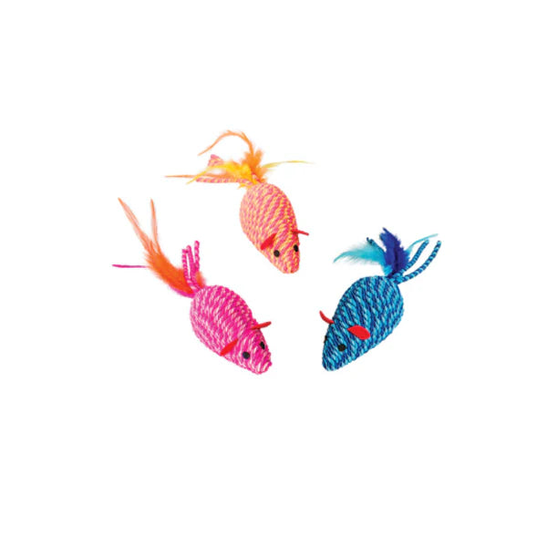 Brightly colored stretchy rope coils all around, irresistible feathers and stretchy tendrils are enticing to cats. Cats will love to bite, pounce, bat and swing these toys.