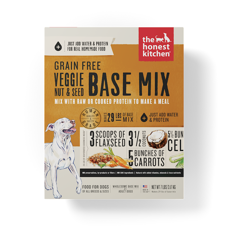 Have you dabbled in homecooking? Let’s face it, it can be a bit overwhelming. This base mix is designed to be the best of both worlds: the convenience of just adding water plus the freedom to choose your own protein. This simple recipe is designed for the homecooker who wants it all but without any grains, fruits, or potatoes. We’re in the process of adding Taurine to our base mix diets. In addition, we’ve started using finer diced ingredients in our base mixes, which in turn has altered the density of the product slightly. The result is a more condensed fill for a standard measuring cup – and the cups per box has been reduced slightly. We want to assure you that there’s no change to the amount of product in the box! During this transition, you may receive a box with or without these changes.