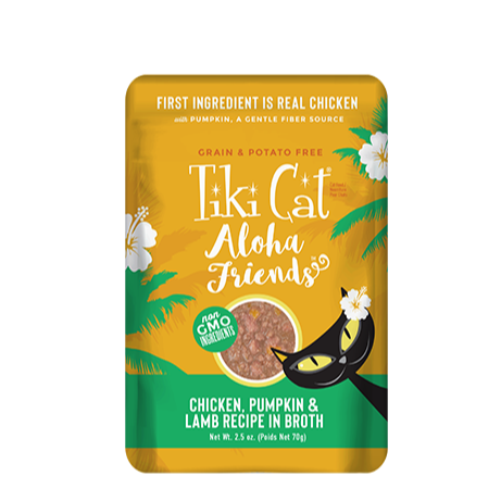 Tiki Cat® Aloha Friends™ are delicious meals that feature chicken with easy-to-digest pumpkin.