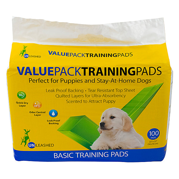 Unleashed Basic Value Housebreaking Pads will make your training time a breeze! Specifically made to attract your pooch to use in times of need. This product can be used from puppy to senior.
