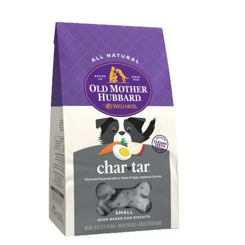 Old Mother Hubbard's Classic Char Tar Bone shaped biscuits are oven baked and flavored with charcoal and a taste of eggs, apples & carrots. Old Mother Hubbard snacks are a wholesome and delicious way to say “good dog”!