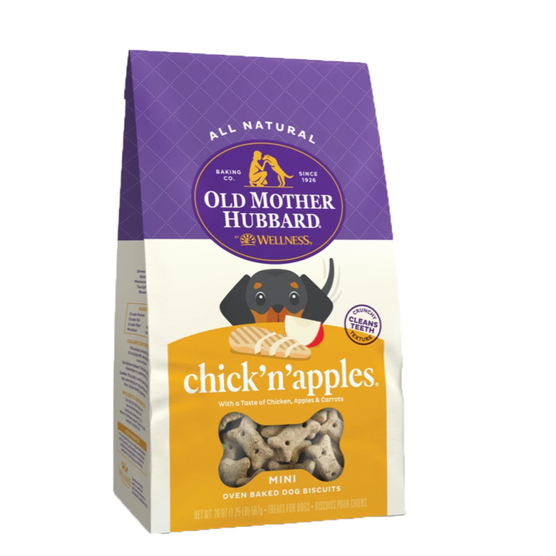 Old Mother Hubbard's Classic Chick'N'Apples Bone shaped biscuits are oven baked with a taste of chicken & apples. Old Mother Hubbard snacks are a wholesome and delicious way to say “good dog”!
