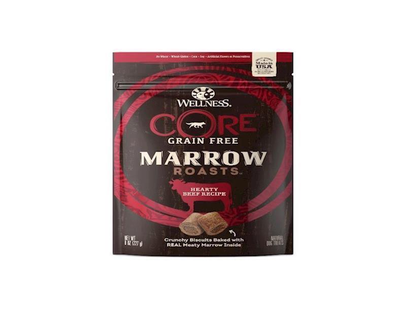 Wellness CORE Marrow Roasts are crunchy biscuits with real meaty marrow inside. These grain-free treats are made in the U.S.A. with premium, natural ingredients and contain no wheat, wheat-gluten, corn, soy, artificial colors or flavors.
