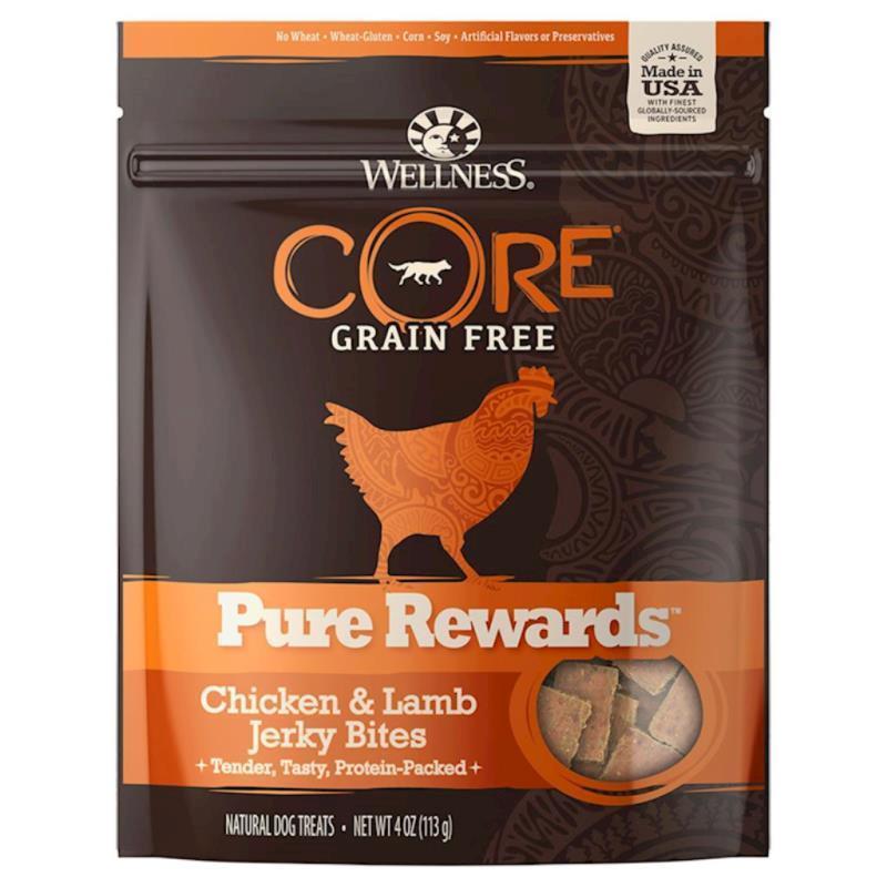 Wellness CORE Pure Rewards are all-natural grain free jerky treats made with premium proteins and no wheat, wheat gluten, corn, soy, artificial colors or preservatives.