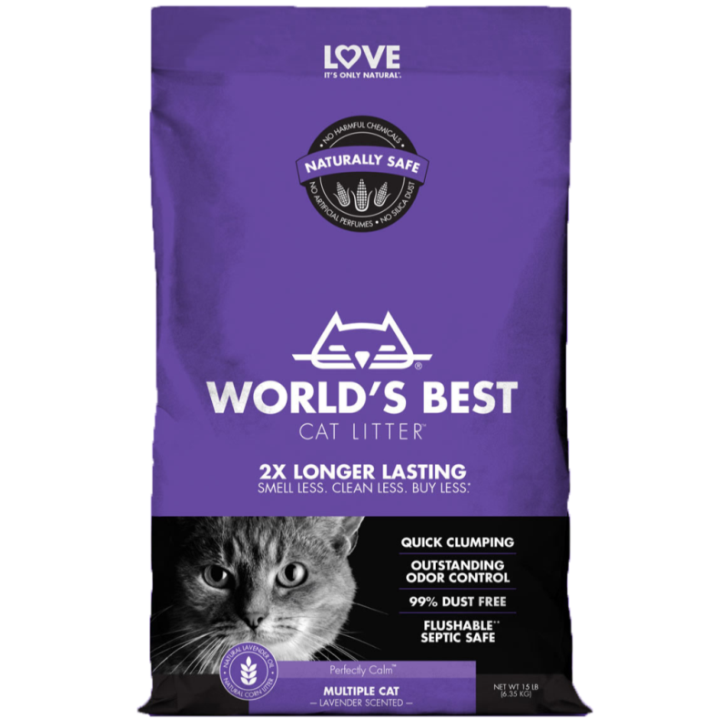 A natural, dust-free cat litter with the same outstanding odor control, quick clumping and easy scooping cleanup of the Multiple Cat Unscented Formula, only with a natural scented lavender oil blend for a calming floral fragrance.